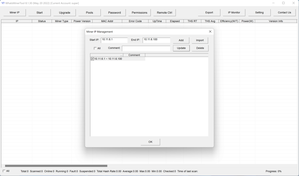 Нажмите кнопку «Miner IP», чтобы начать настройку сети.