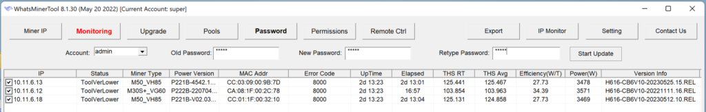 adminв качестве нового пароля, но его всё равно необходимо обновить через WhatsMiner Tool, чтобы включить API.